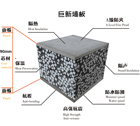 巨新復合實芯墻板質量輕,對于建筑物基礎結構設計,可以優化建筑物結構